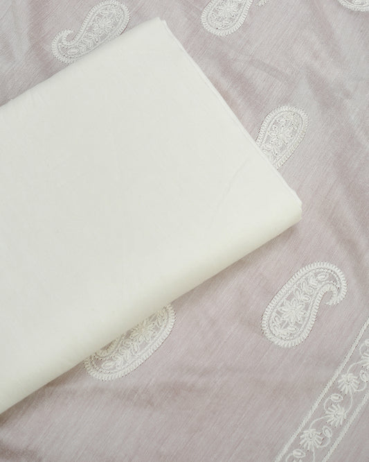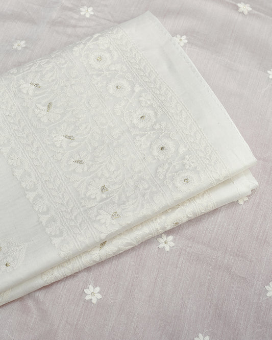 White Chikankari Chanderi Silk Unstitched Dress Material Suit