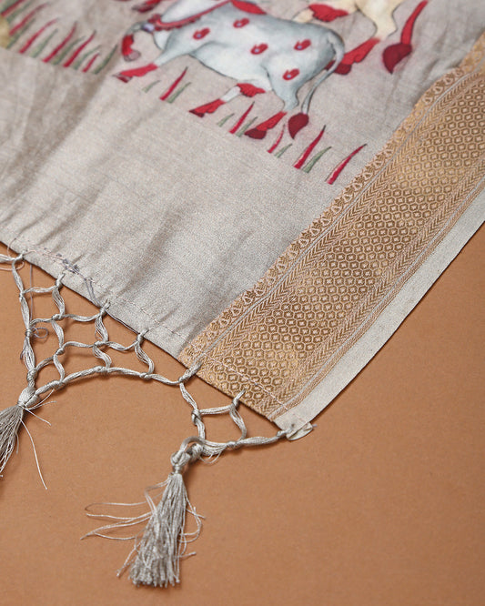 Meadow Green Pichwai Chiniya Silk Unstitched Dress Material Suit