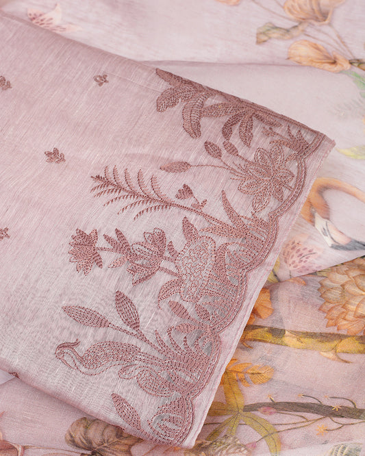 Orchid Pink Linen Unstitched Suit with Applique Organza Dupatta