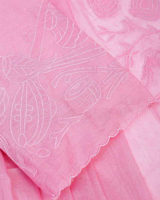 Pink Peacock Chanderi Silk Unstitched Dress Material Suit