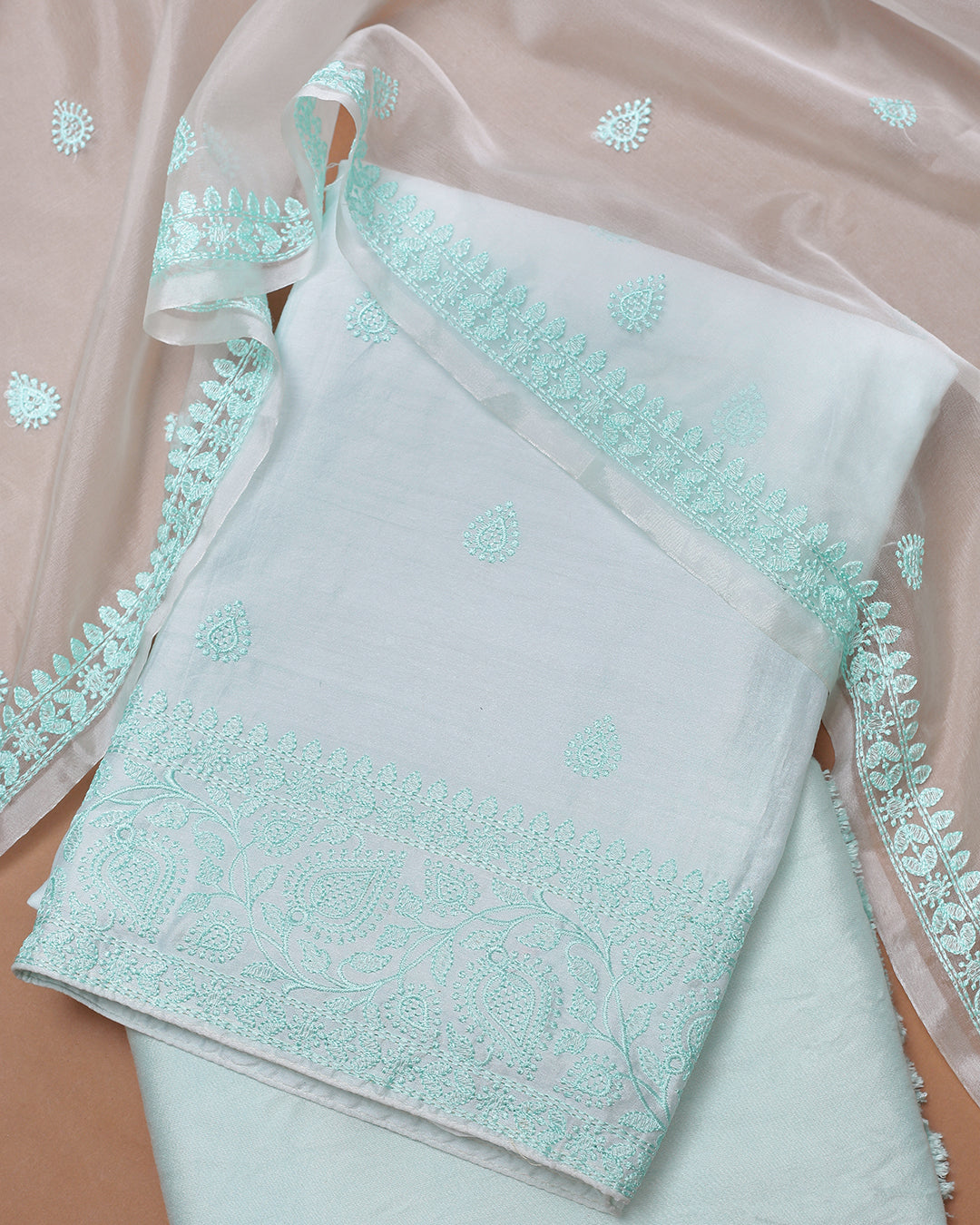 Aqua Mist Chanderi Cotton Unstitched Suit with Organza Dupatta