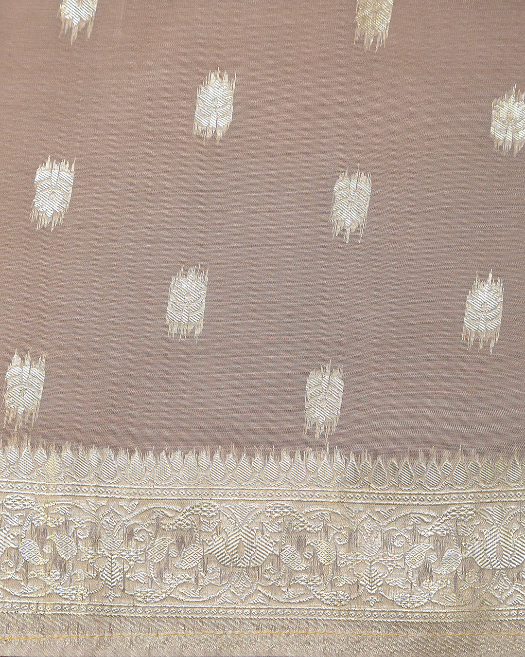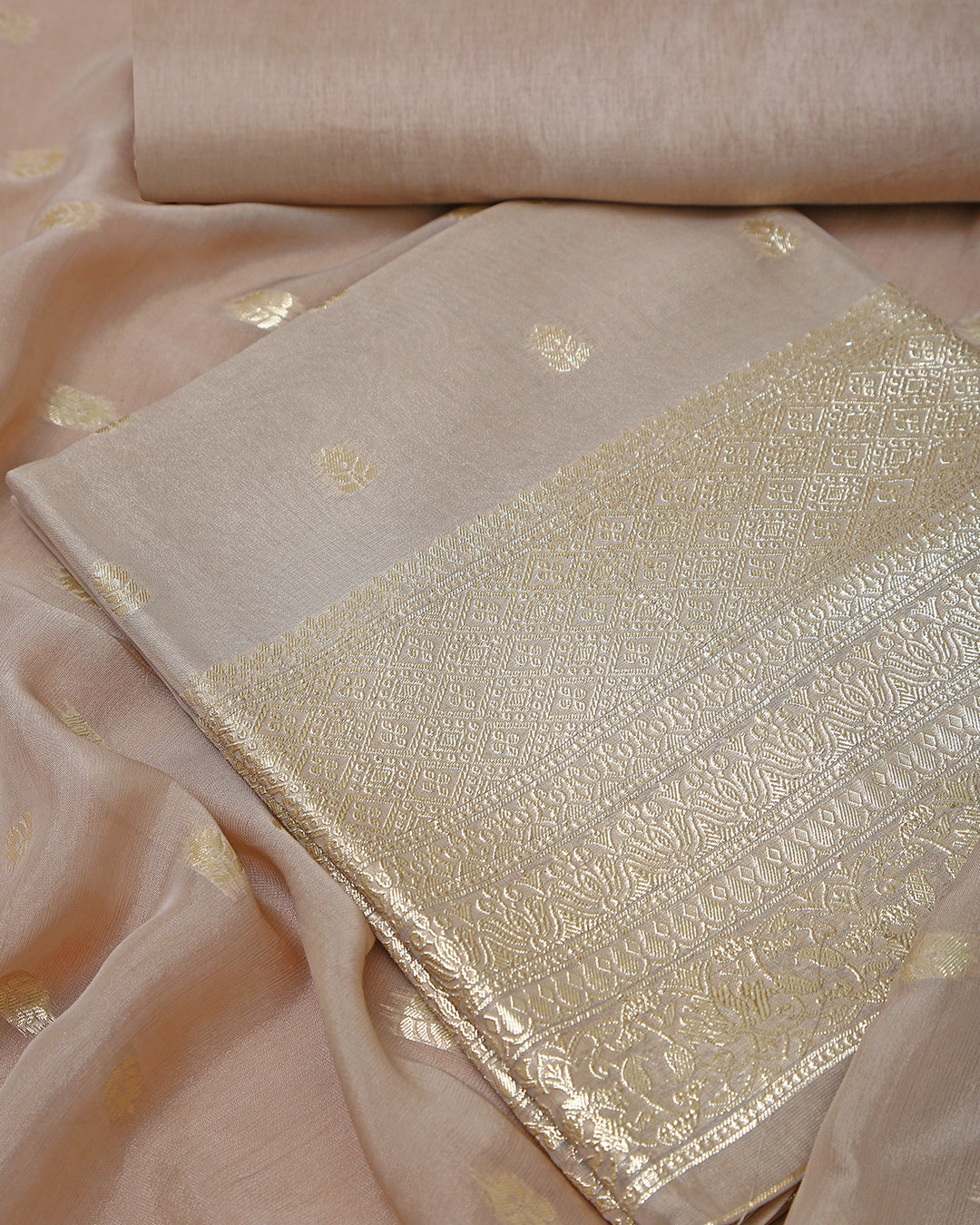 Beige Gold Banarasi Georgette Unstitched Dress Material Suit
