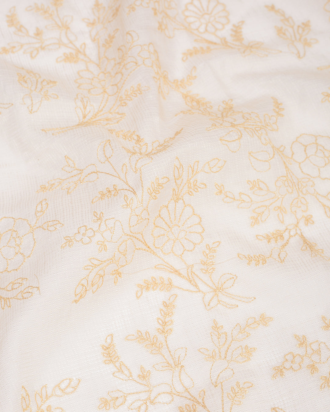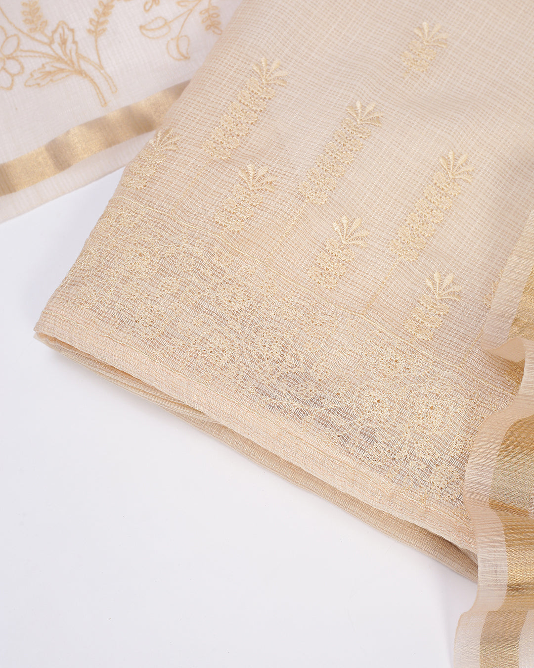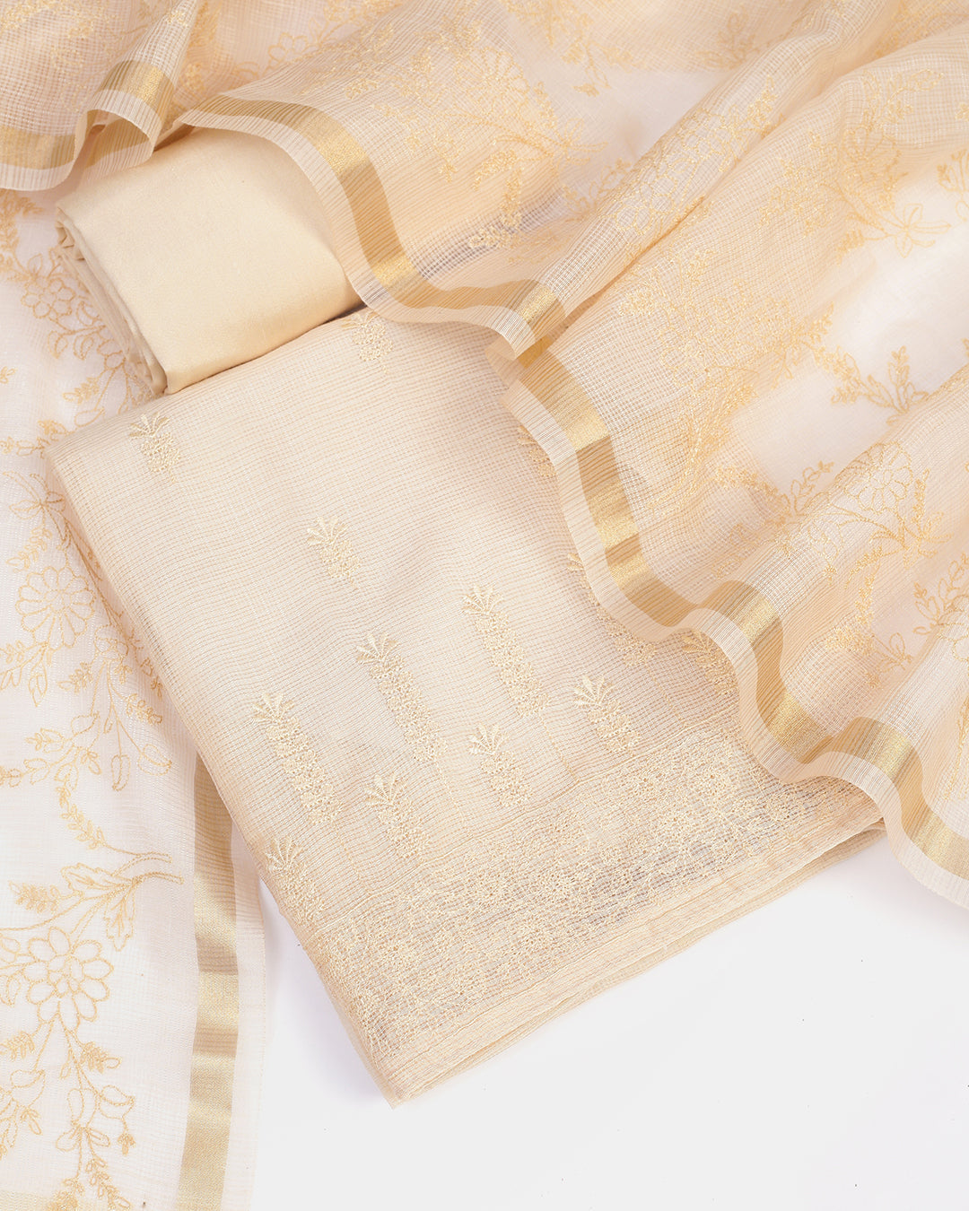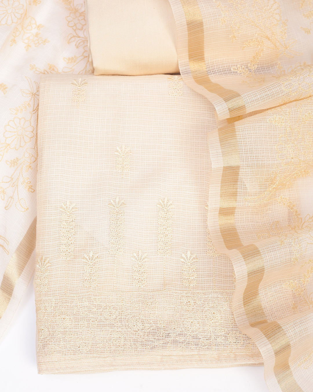 Cream Embroidered Kota Doria Unstitched Dress Material Suit