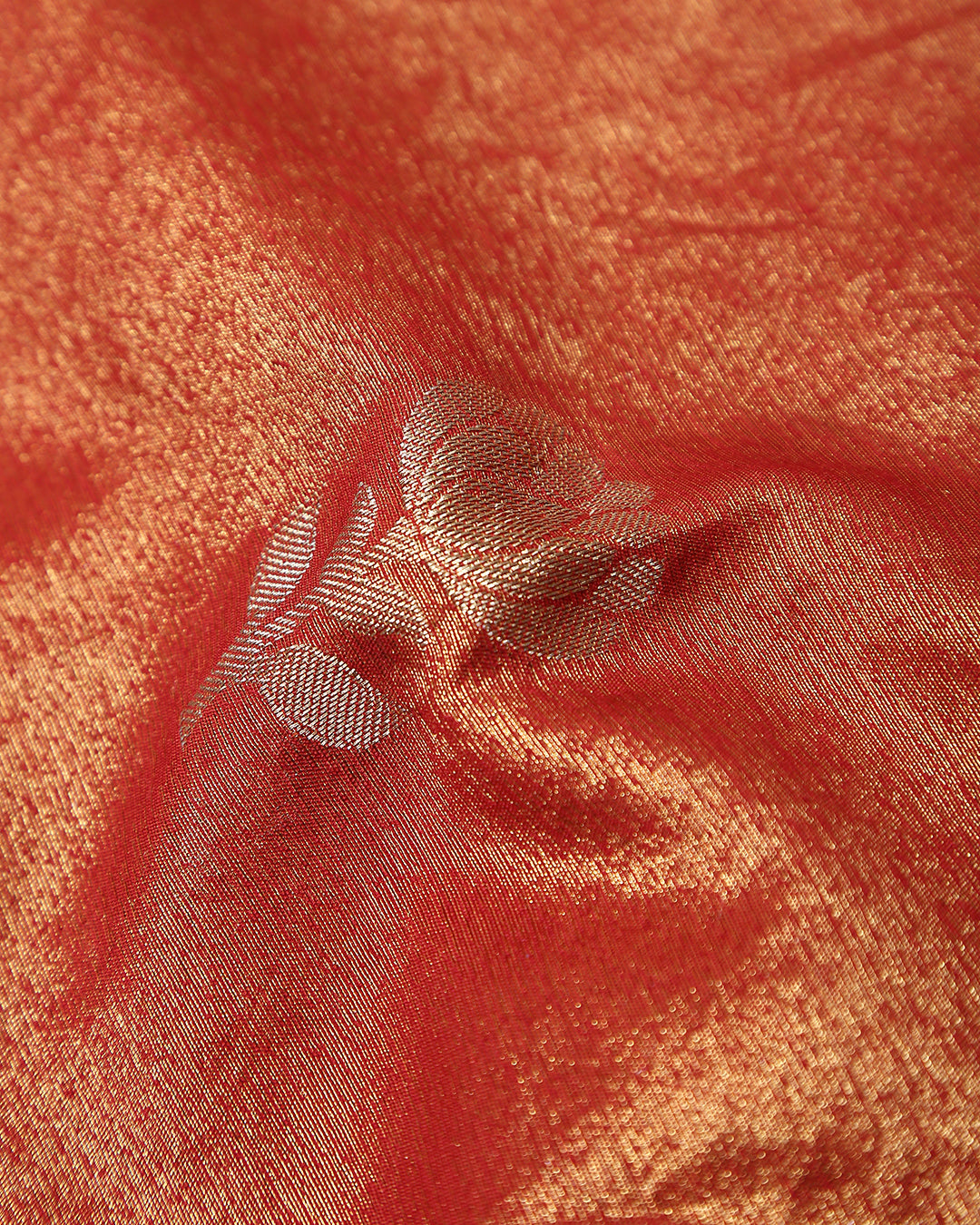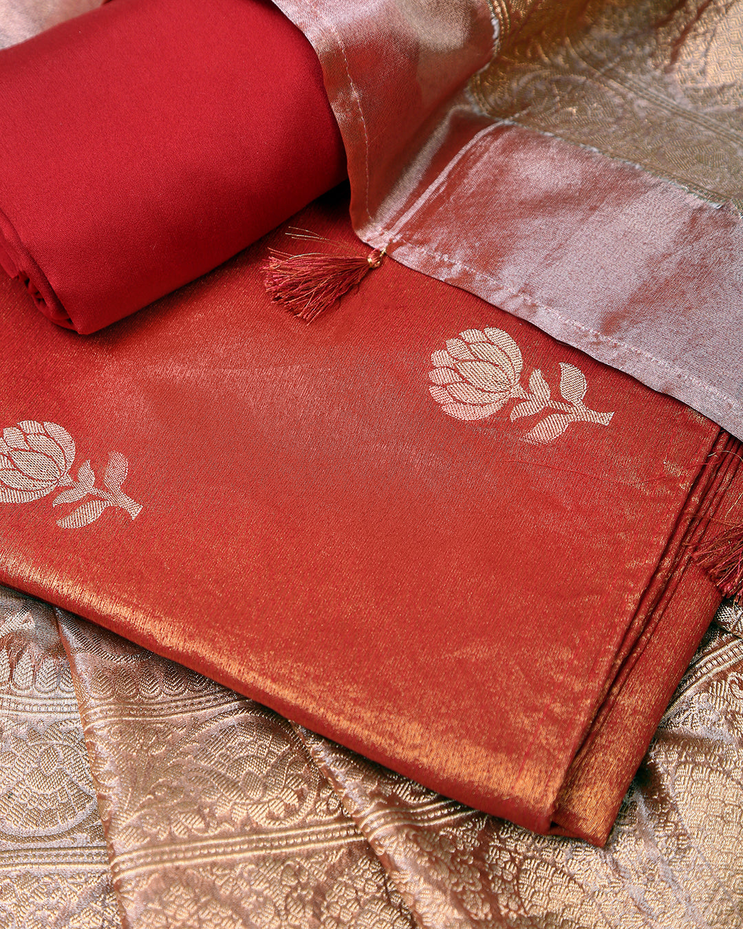 Crimson Blossom Banarasi Tissue Unstitched Dress Material Suit