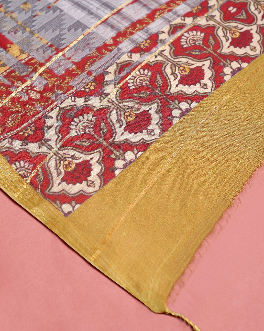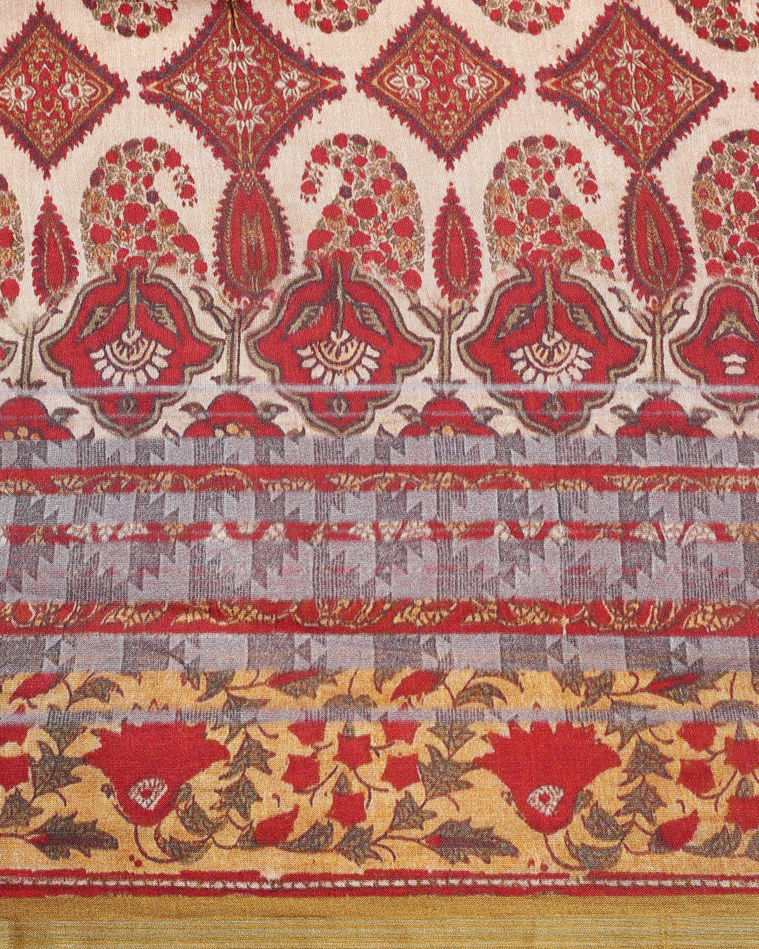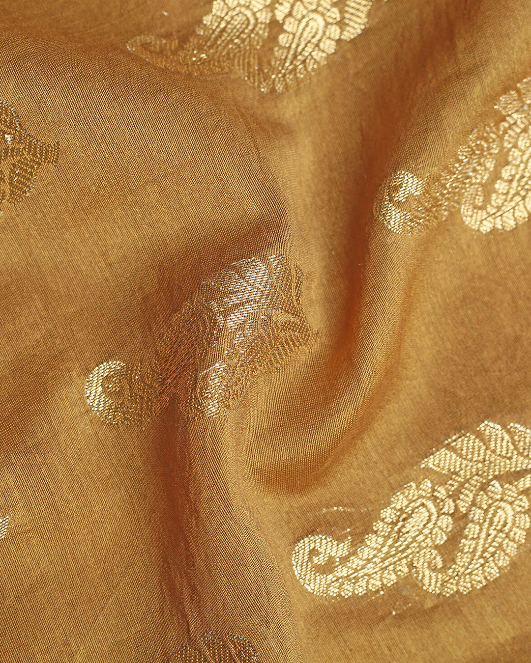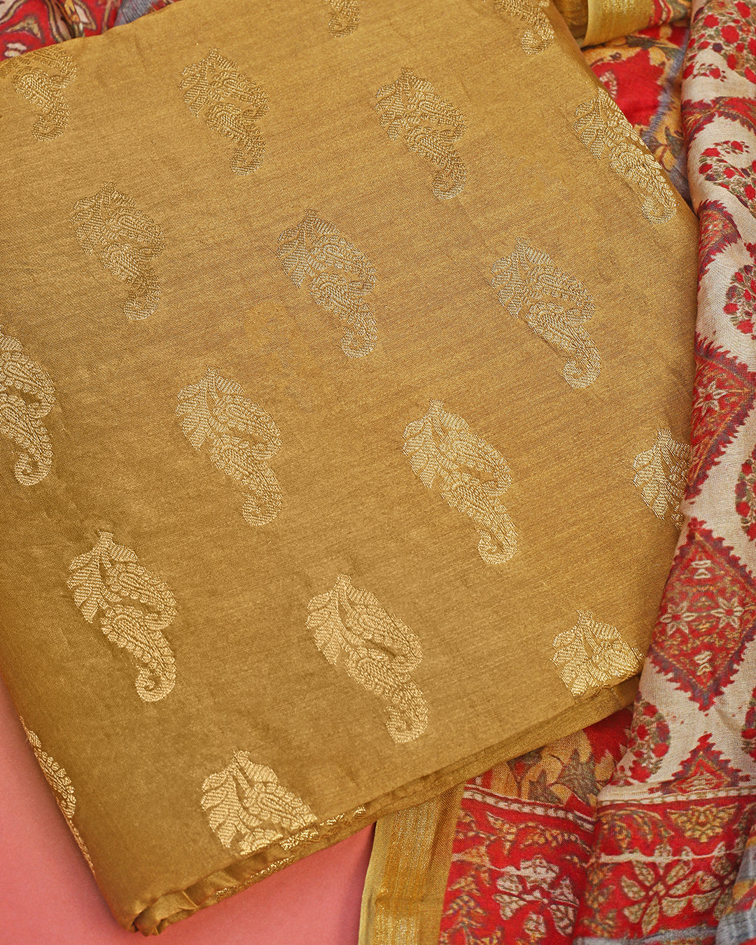 Gold Paisley Maheshwari Silk Unstitched Dress Material Suit