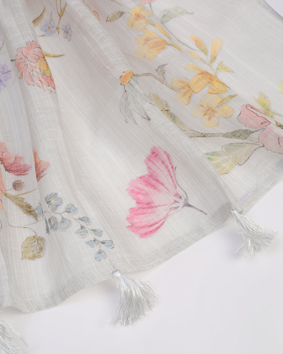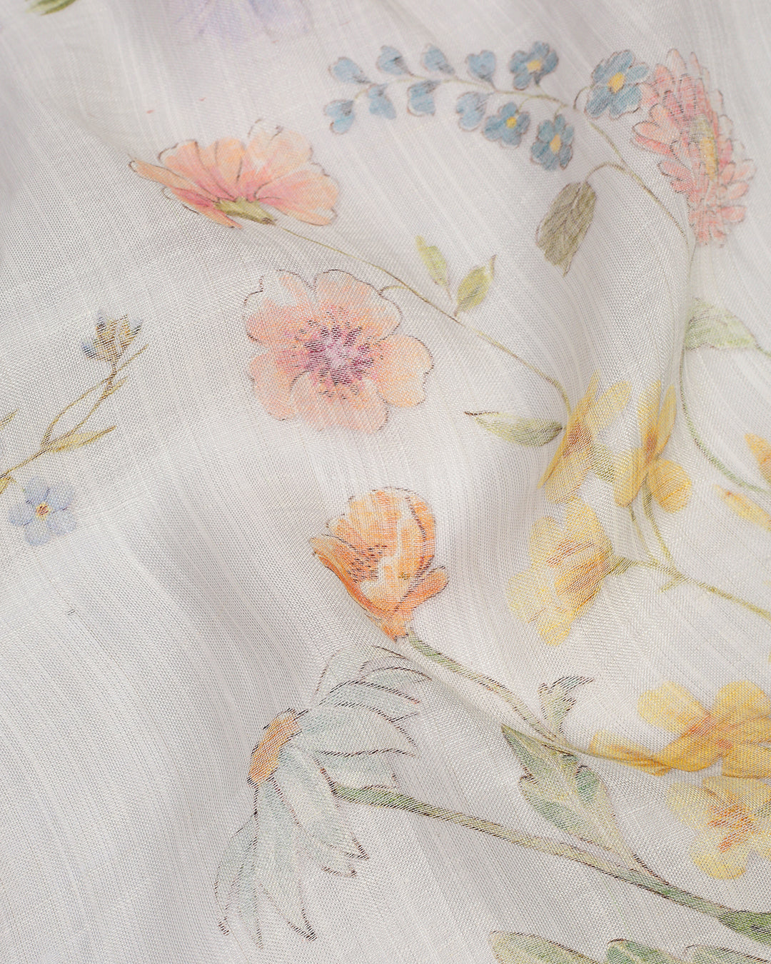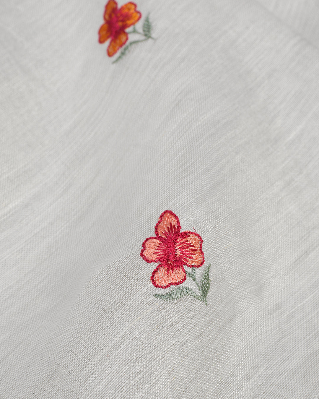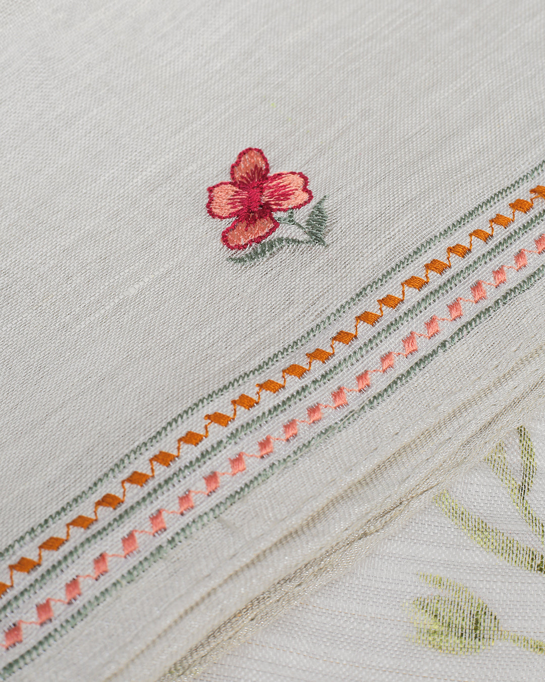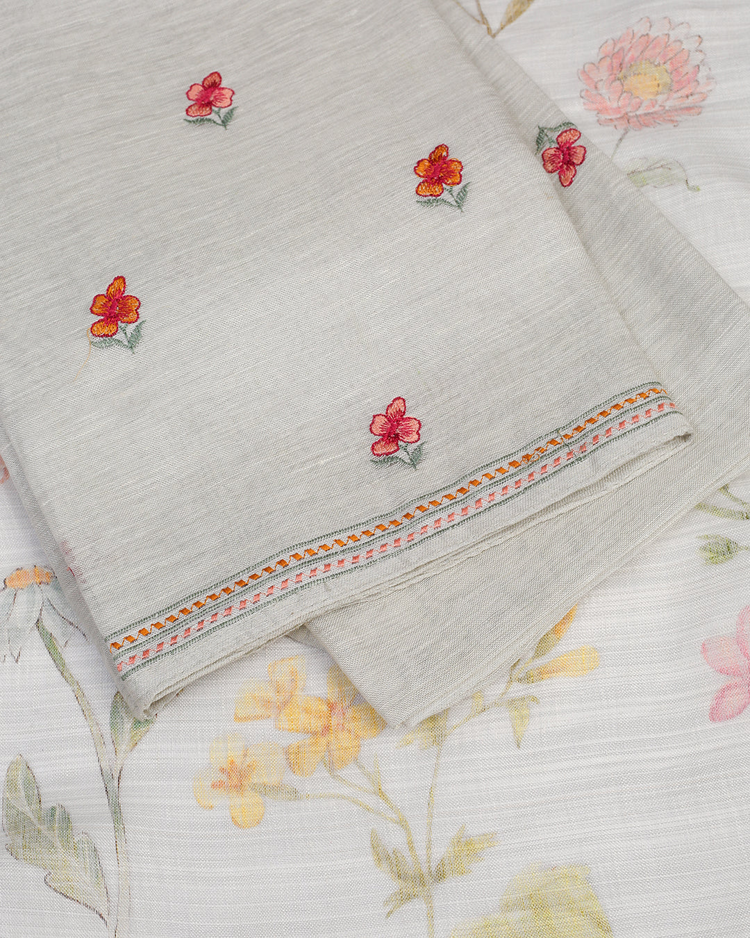 Ivory Floral Embroidered Linen Unstitched Dress Material Suit