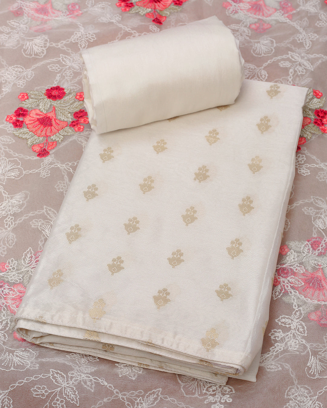 Ivory & Gold Banarasi Cotton Unstitched Dress Material Suit