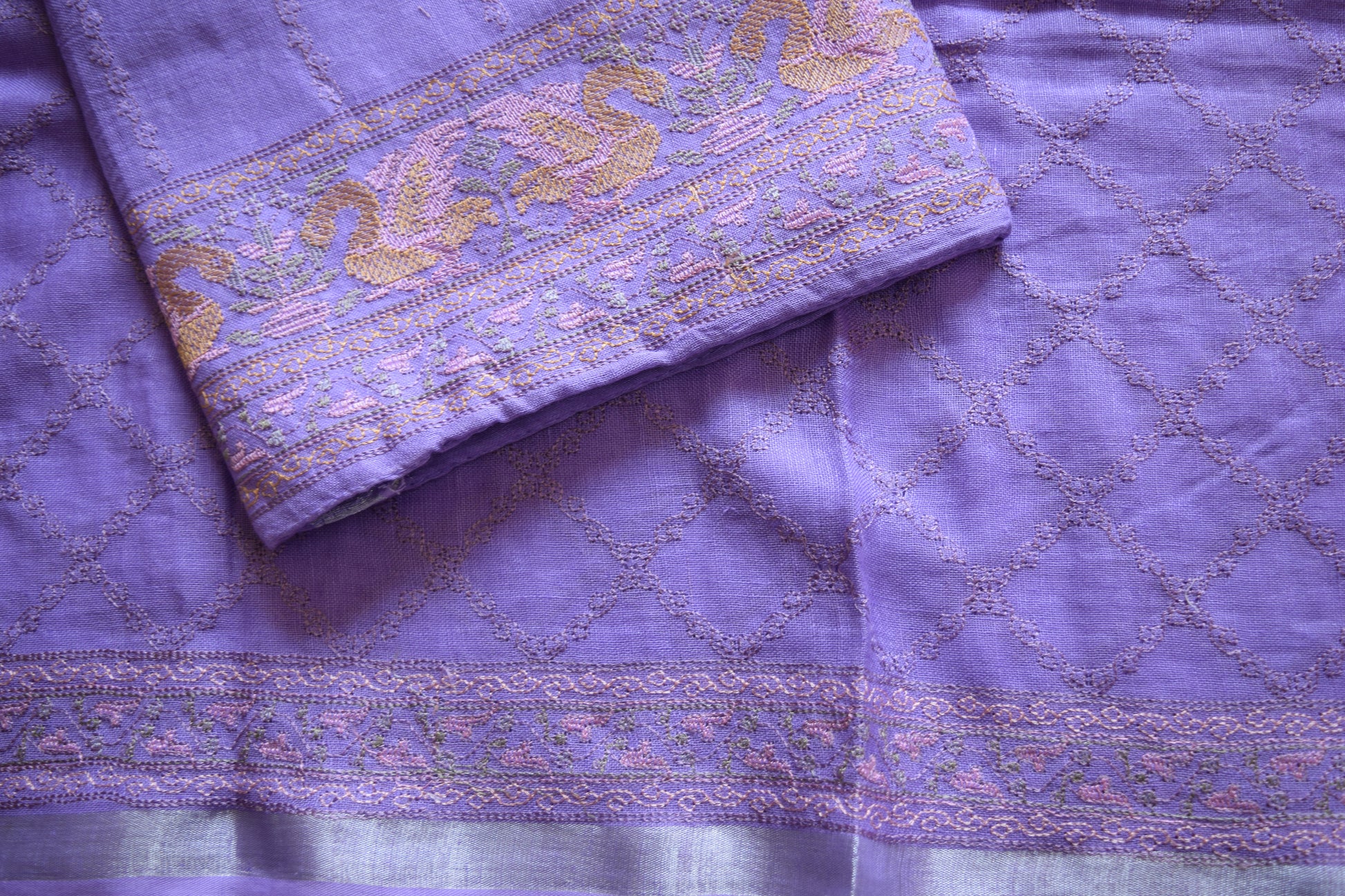 Lavender Fields Zari Linen Unstitched Dress Material Suit
