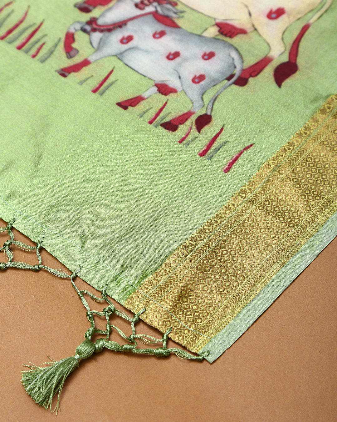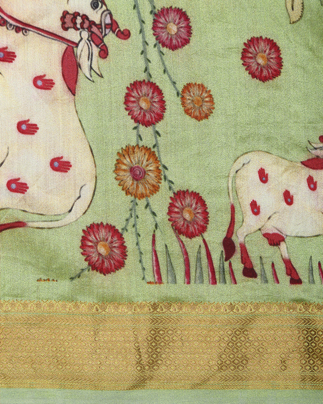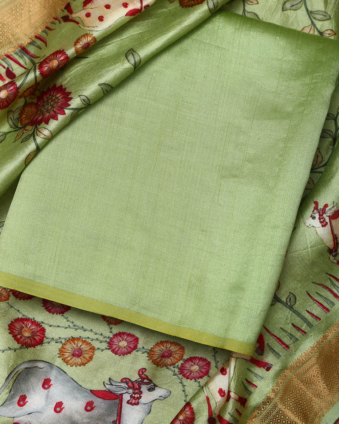 Meadow Green Pichwai Chiniya Silk Unstitched Dress Material Suit