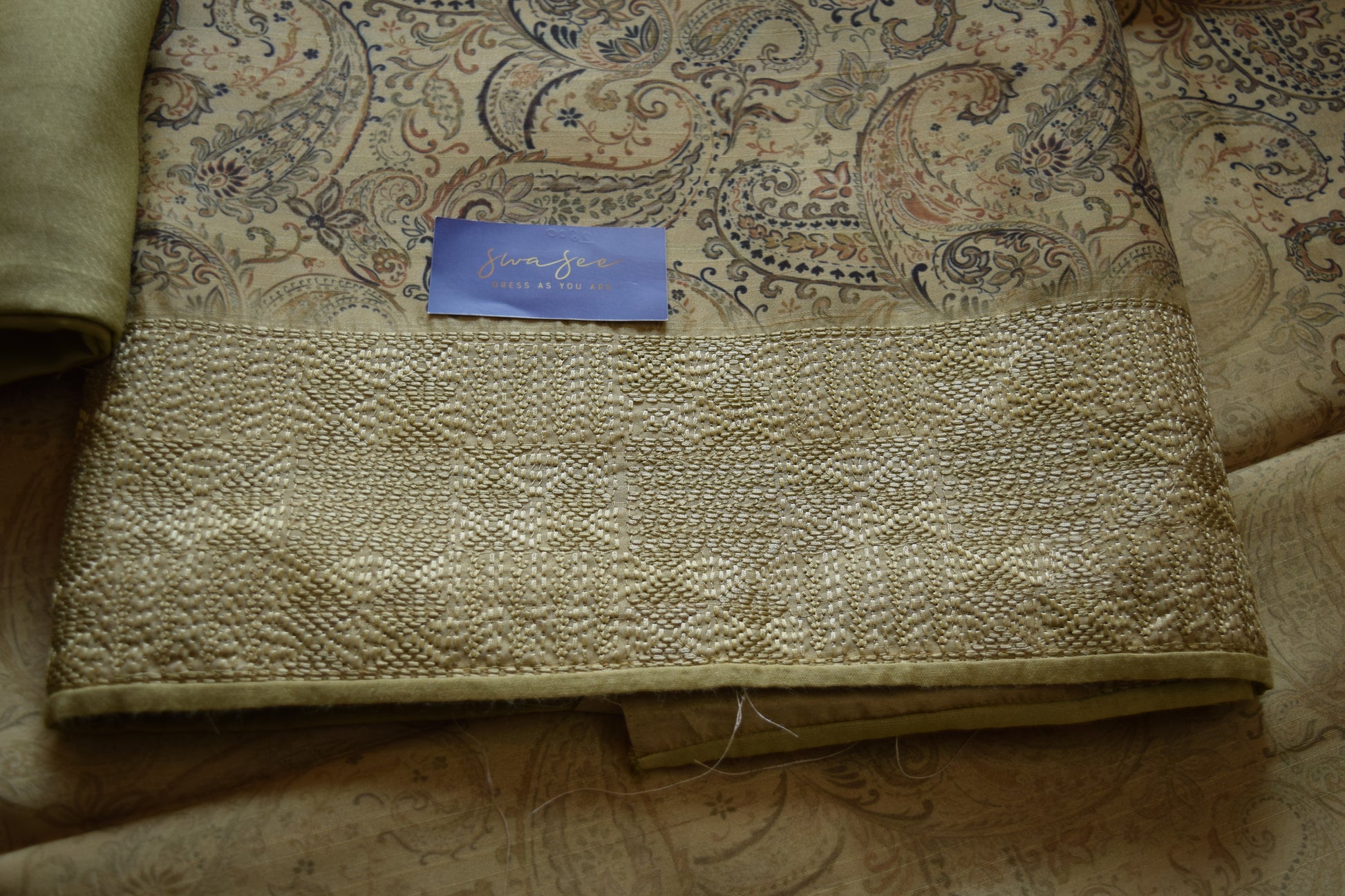 Olive Mist Chanderi Silk Unstitched Dress Material Suit
