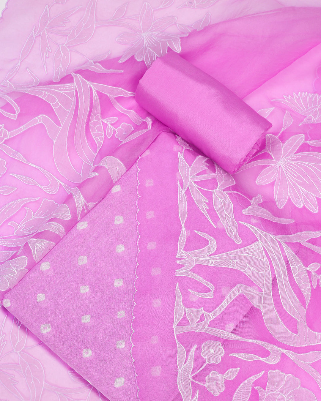 Orchid Pink Linen Unstitched Suit with Applique Organza Dupatta