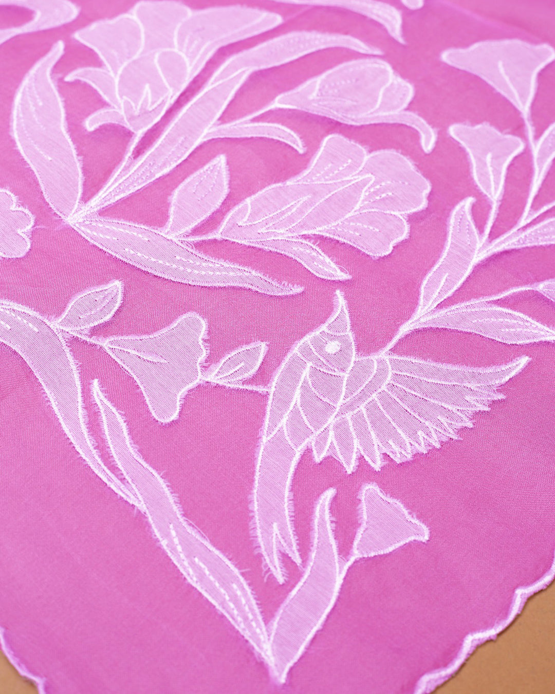 Embrace delicate charm with our Orchid Bloom suit set. This unstitched ensemble features a soft, orchid pink linen top with subtle woven details. The highlight is the exquisite organza dupatta, adorned with intricate applique work in a floral design, creating a beautiful, layered effect. The set includes a matching orchid pink fabric for the bottom, allowing you to create a custom-tailored outfit perfect for daytime events or special occasions.