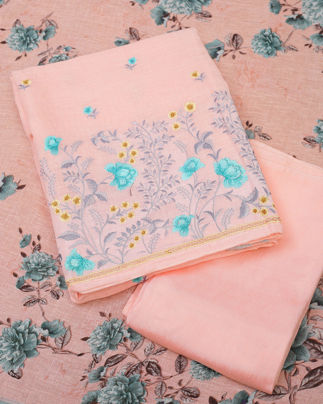 Peachy Keen Embroidered Linen Unstitched Dress Material Suit