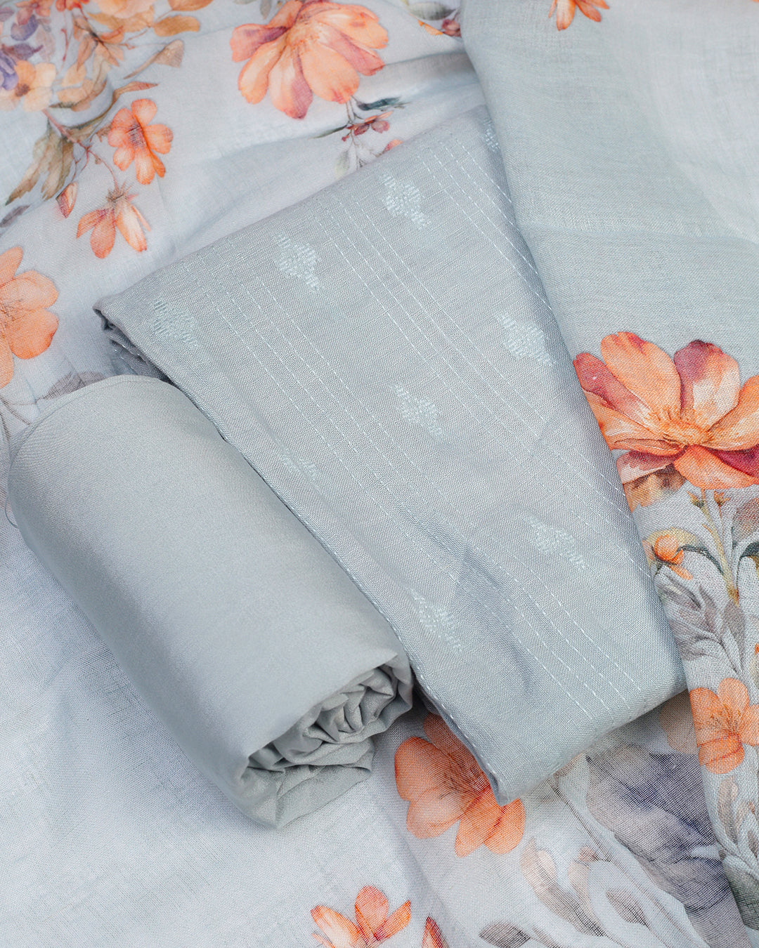Powder Blue Azure Bloom Linen Unstitched Dress Material Suit